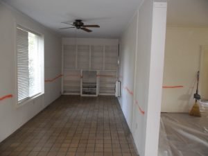 You’ll notice the orange paint line which was sprayed on the walls that were removed.